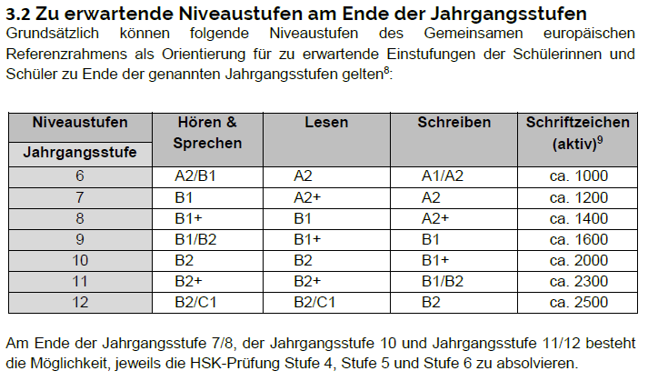 Am Ende der Klasse 12 ist der Abschlusss der HSK 3 möglich.
